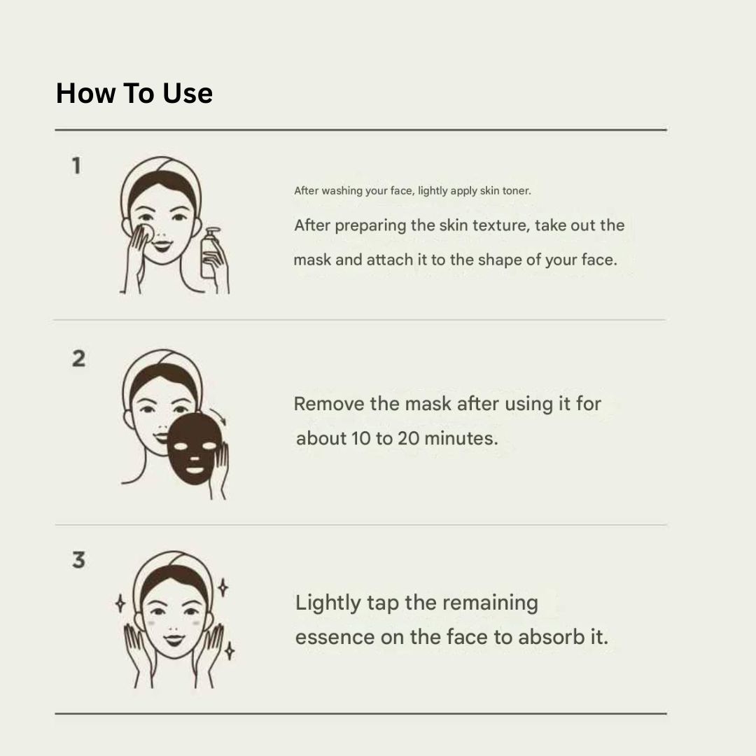 - Remove the mask gently after 10-20 minutes and pat lightly for better absorption of the remaining essence.