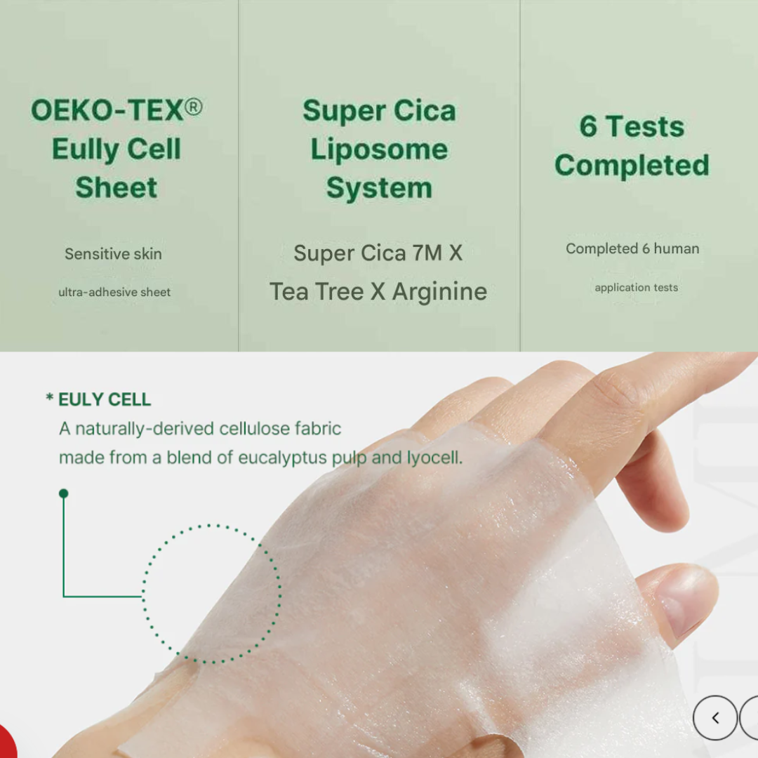 - A sheet mask enriched with Centella Asiatica Extract and Super Cica 7, offers a deep soothing effec to calm irritated skin.