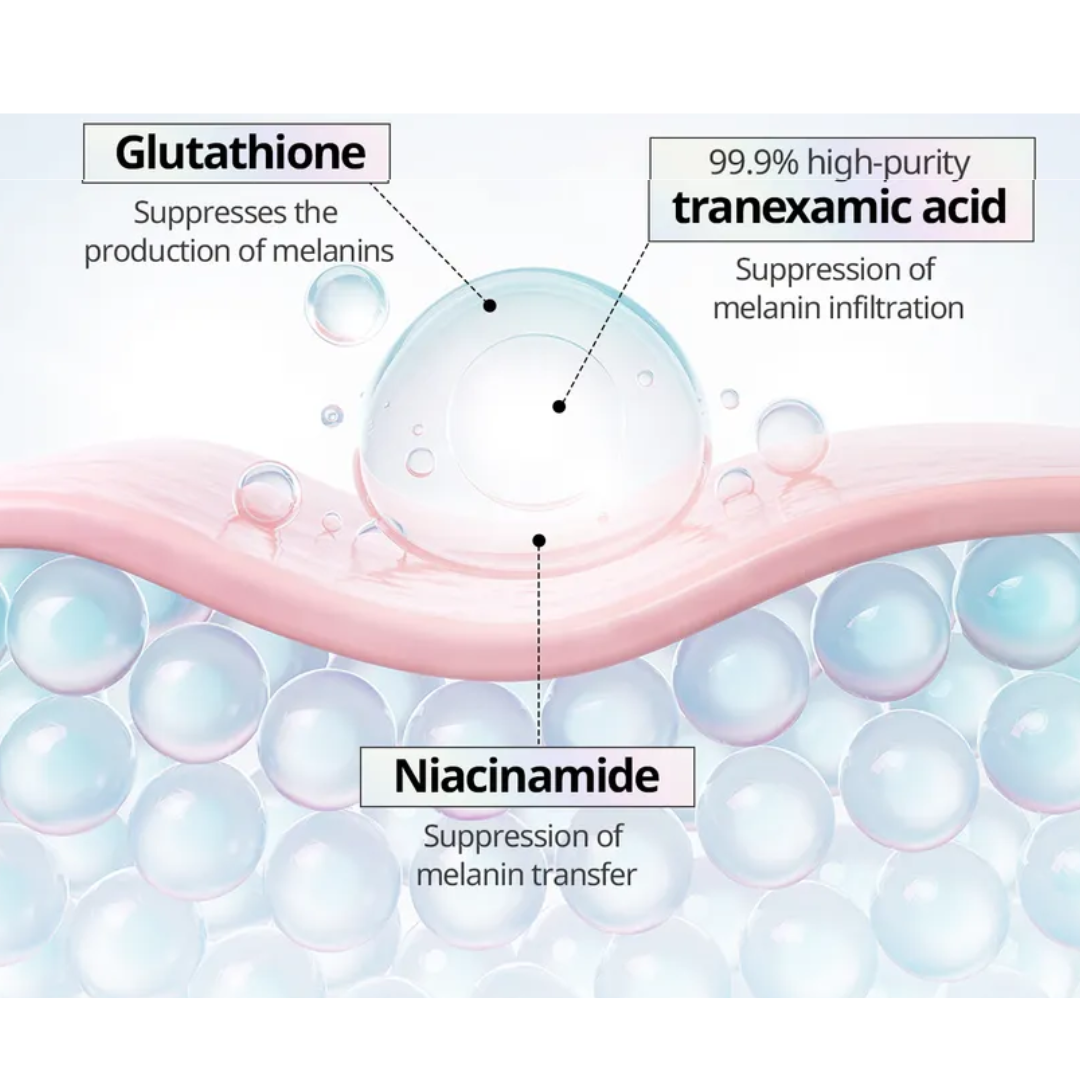 Water, Glycerin, Niacinamide, Propanediol, Butylene Glycol, Methylpropanediol, Tranexamic Acid, 1,2-Hexanediol, Hydroxyacetophenone, Panthenol, Allantoin, Polyglyceryl-10 Laurate, Trehalose, Xanthan Gum, Ammonium Acryloyldimethyltaurate/VP Copolymer, Carbomer, Adenosine, Ethylhexylglycerin, Arginine, Disodium EDTA, Dipotassium Glycyrrhizate, Beta-Glucan, Betula Platyphylla Japonica Juice, Glutathione, Glycyrrhizic Acid, Hydrogenated Lecithin, Macadamia Ternifolia Seed Oil, Squalane, Citrus Junos Fruit Extract, Citrus Paradisi (Grapefruit) Fruit Extract, Hippophae Rhamnoides Fruit Extract, Ceramide NP, Sodium Hyaluronate, Dimethylsilanol Hyaluronate, Hyaluronic Acid, Hydrolyzed Hyaluronic Acid, Hydrolyzed Sodium Hyaluronate, Cholesterol, Potassium Hyaluronate, Stearic Acid, Hydroxypropyltrimonium Hyaluronate, Sodium Hyaluronate Crosspolymer, Sodium Hyaluronate Dimethylsilanol, Sodium Acetylated Hyaluronate